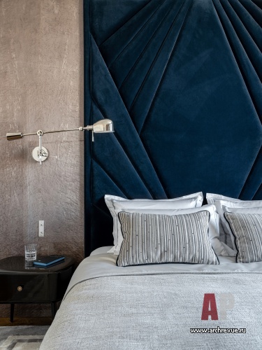 Спальня кровать и панели из шпона клена и в бархате Creations Metaphores, на заказ, по эскизам дизайнера; тумбочки Jetclass