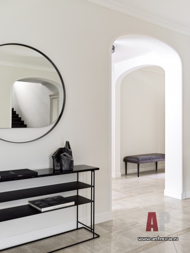 Стены во многих помещениях изначально были разного цвета, присутствовали излишние архитектурные ордеры – пилястры и колонны на стенах, где они были совершенно не нужны. Дизайнер перекрасила стены в белый цвет, убрала избыточный лепной декор, сохранив красивые арочные проемы, облегченные кессоны, пилястры, которые вытягивают пространство. Она впустила свет, обнажила структуру, вывела качественную архитектуру на первый план.