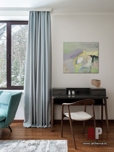 Заказчики дизайнера Ксении Мезенцевой купили загородный дом на вторичном рынке, они не хотели тратить много времени на перестройку и сделали ставку на эффективное декорирование. Тем более, что исходная ситуация позволяла минимальное архитектурное вмешательство: дом построен по проекту архитектора Сергея Скуратова в клубном поселке на Минском шоссе.