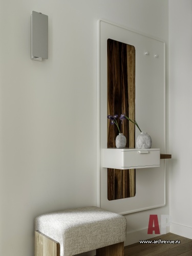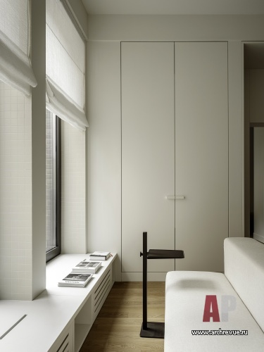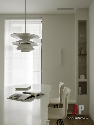 Декоративное наполнение квартиры – реверанс в сторону архитектуры дома-мастерской Константина Мельникова и принципов проектирования жилых пространств русскими архитекторами-конструктивистами 1920-х годов. Чистые линии, простые формы, белый монохром, обилие встроенных элементов и минимум мебели с максимумом функционала
