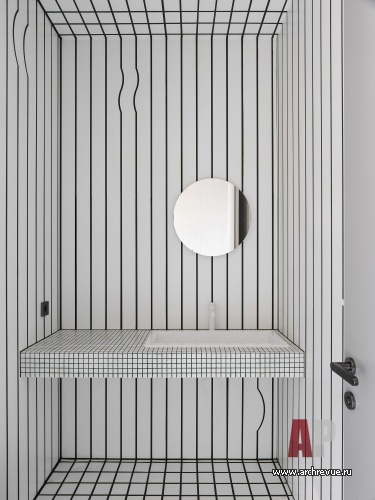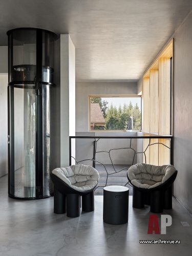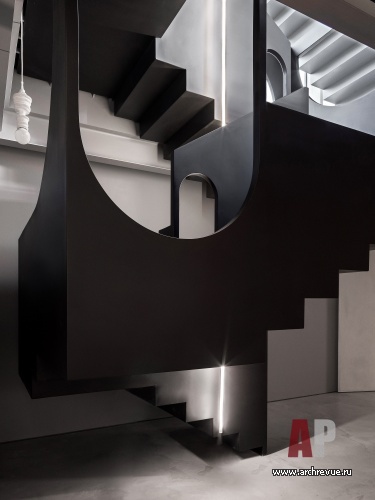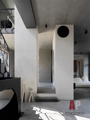 Бюро Le Atelier реализовало экспериментальный проект, дом как тотальное произведение искусства. Его радикальные интерьеры – ответ на нетривиальный запрос заказчицы, которая увидела в предыдущих проектах архитекторов проектах арт-направленность и поставила задачу создать piece of art, современное пространство тишины. Ради этого она и приобрела готовый трехэтажный дом площадью 420 кв. м на Рублево-Успенском шоссе.