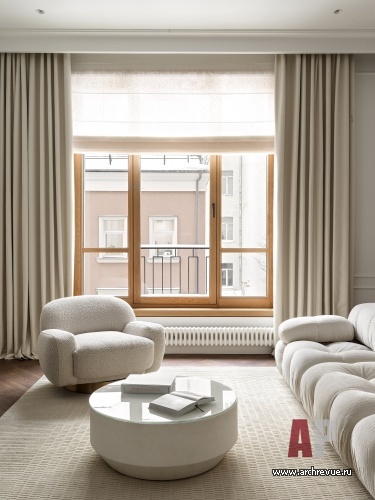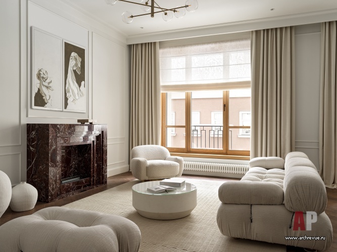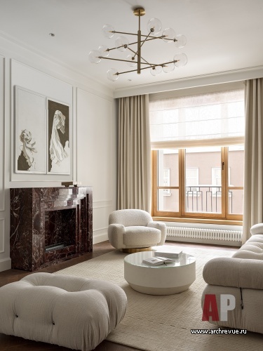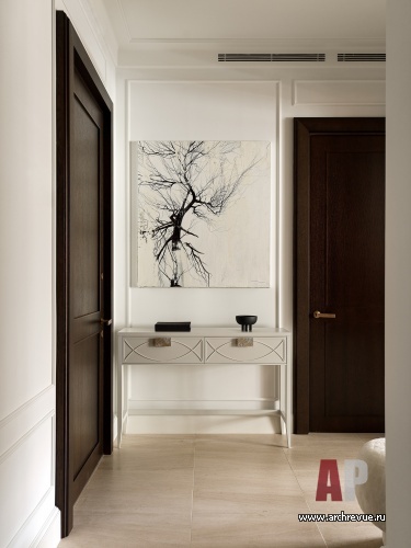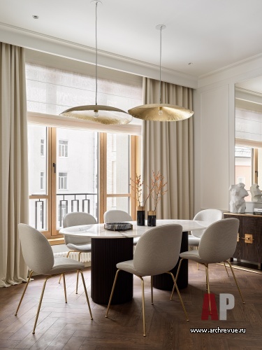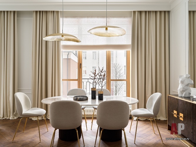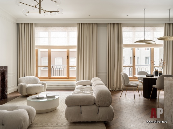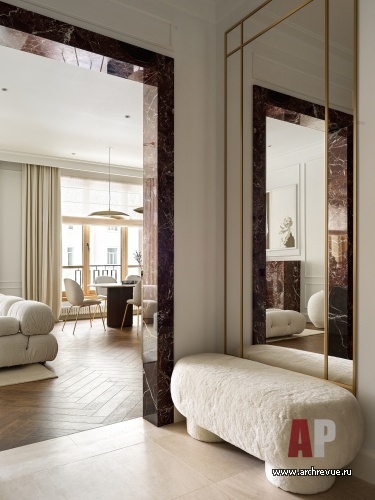 При создании квартиры дизайнер и заказчики вдохновлялись парижскими интерьерами, где филигранно соединяется история и современность. В итоге получился интерьер с классической, спокойной архитектурой, современной мебелью и актуальным искусством.