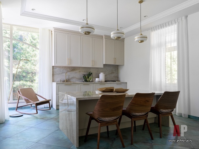 Кухня, кухонная мебель, на заказ; стулья Rolf Benz, поставщик «ТРИО-Интерьер»; кресло-качалка Woak Design