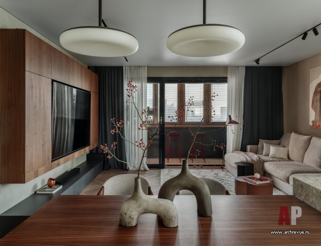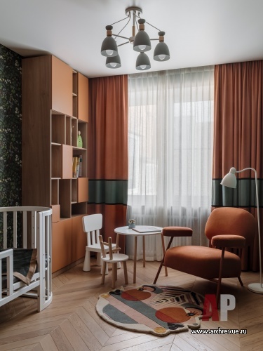 «Заказчики – семья режиссера и сценариста – хотели интерьер, который будет восстанавливать силы после напряженного съемочного дня и вдохновлять на творческую работу. С яркими, но естественными цветовыми акцентами, натуральными материалами, тактильный и позитивный», - отмечает дизайнер.