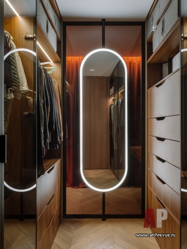 Особого внимания потребовало инженерное оснащение, пришлось искать нестандартные решения. «Так как потолок был изначально низкий, то канальное кондиционирование, которое я чаще всего применяю в проектах, не рассматривали. Однако плит-системы всегда портят внешний вид интерьера. Чтобы их спрятать, мы сделаны специальные антресоли в шкафах с отверстиями для воздуха», - рассказывает дизайнер.