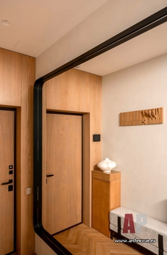 Прихожая и холл пуфы Woodfans, на заказ; корпусная мебель из шпона дуба, на заказ, по эскизам дизайнера