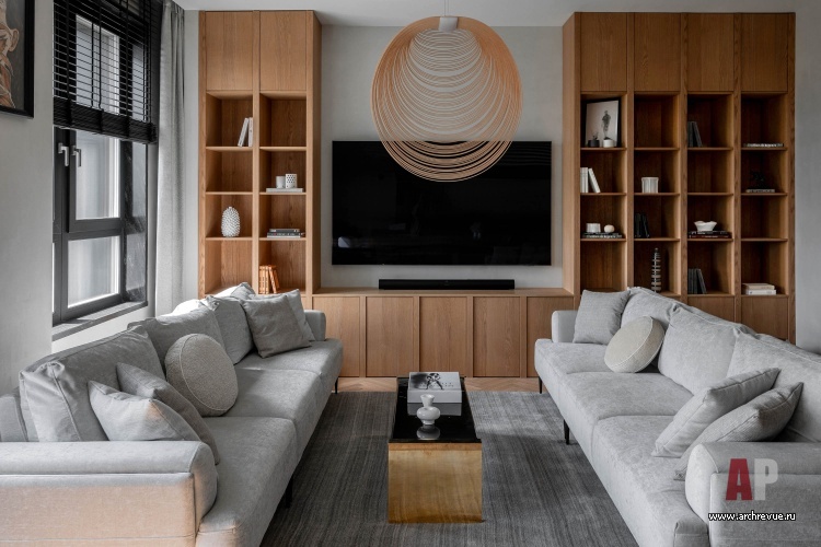 Гостиная диваны Dantone Home журнальный столик Baxter; корпусная мебель из шпона дуба, на заказ, по эскизам дизайнера