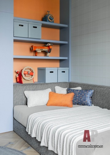 Функционально было необходимо спроектировать комфортное городское жилье для семьи с двумя детьми (девочкой и мальчиком), организовать три спальни, общую зону и функциональные вспомогательные помещения. Вдохновением для проекта стал вид из квартиры на Москву-реку. Спокойные краски и безмятежность панорамных перспектив подтолкнули к созданию интерьера с нейтральной цветовой палитрой, тактильными фактурами и исключительно натуральными материалами.