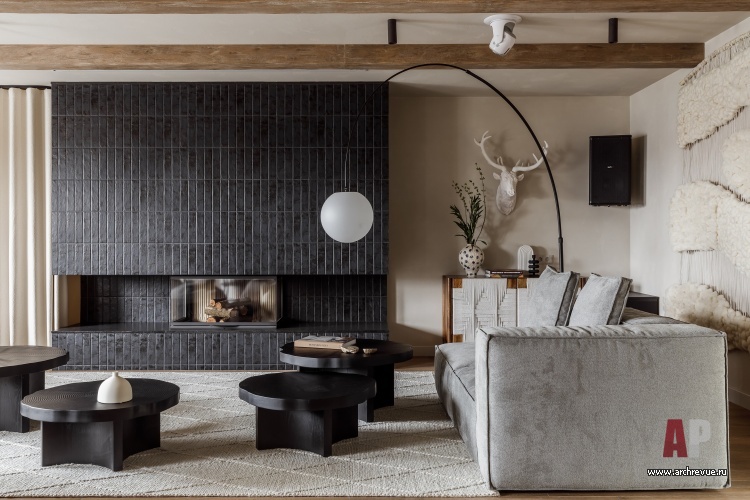 Основной идеей проекта стало создание современного обволакивающего интерьера с «изюминкой», в котором приятно отдыхать семьей и проводить время с друзьями. Своего рода интерпретация современного шале, с природными текстурами и спокойной цветовой палитрой.