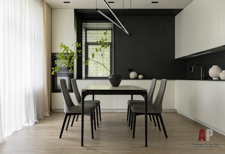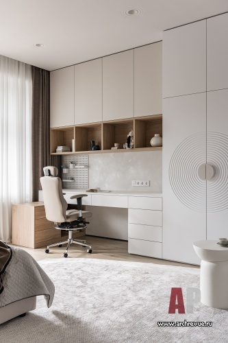 Семейная пара средних лет с дочерью-ученицей начальных классов поставили задачу создать современный и уютный интерьер в монохромной природной палитре. Хотелось, чтобы после интенсивных трудовых будней, в доме их ждала приятная, расслабленная атмосфера. Дизайнер спроектировала лаконичный, выверенный и обволакивающий жилой интерьер, в котором приятно отдыхать от городской суеты.