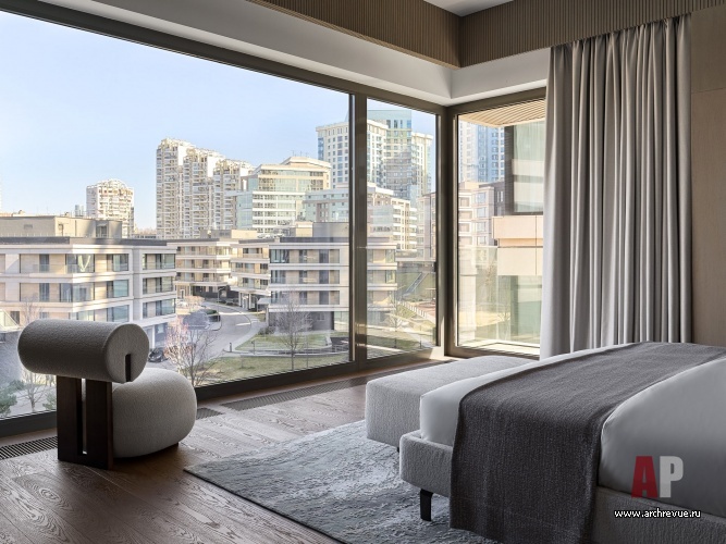 Спальня кровать, банкетка, тумбы Minotti; кресло и столик Norr11, поставщик L’Appartement