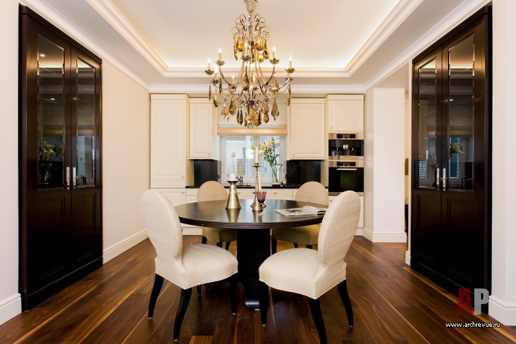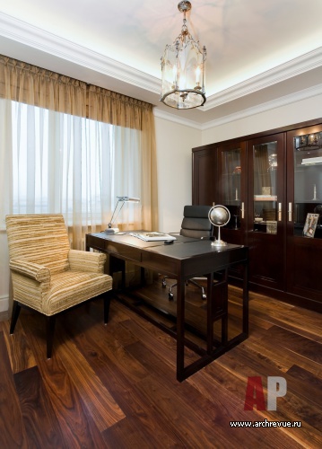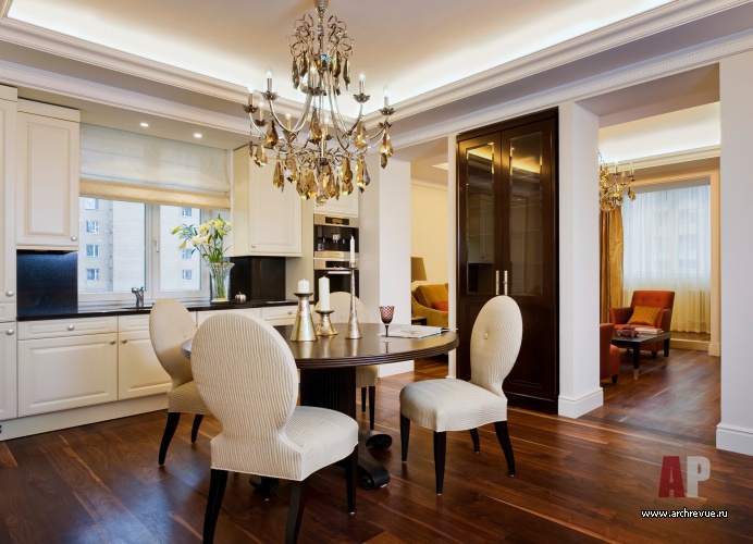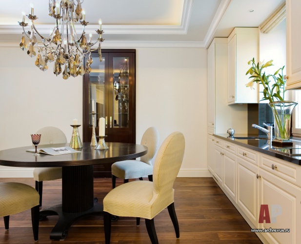 Ставка на облегченный вариант ар-деко проявляет себя в лаконичных линиях пространства, сдержанной цветовой гамме и малом количестве предметов обстановки. Несмотря на минималистичный дизайн квартира производит впечатление интерьера «с историей».