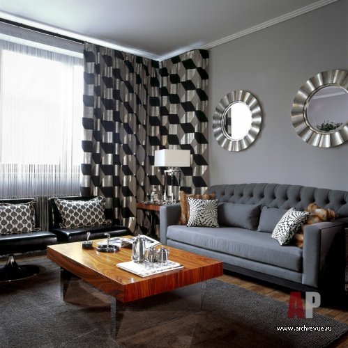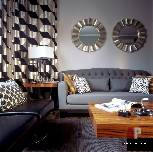 Ноту ар-деко вносят фурнитура из хромированной стали, аксессуары из кожи, подушки из лисьего меха.
