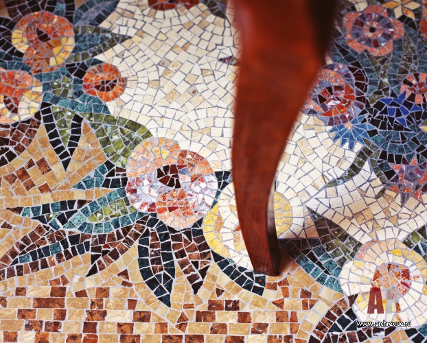 Авторские витражи представляют собой тонированные стекла с шелковыми гравюрами, на которых изображены виды старой Венеции.