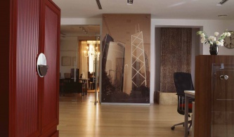 Ведущую роль среди них играют декоративные отделки стен, авторская с патиной ковка, роскошные фактуры художественно обработанного дерева. Отдельного внимания заслуживает виртуозная работа с камнем и изысканные витражи. С классическим по духу интерьером гармонирует современная мебель от ведущих европейских производителей.