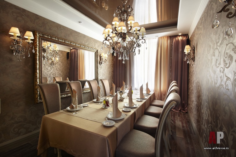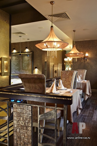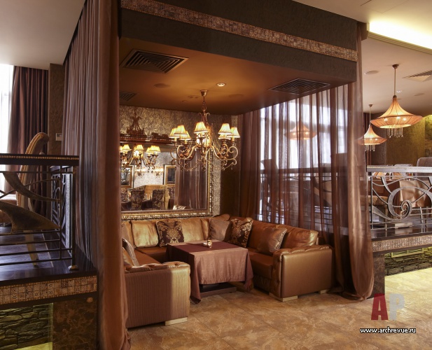 Помимо основного зала со сложным зонированием в ресторане есть VIP-зал, VIP-кабинеты и летняя веранда.