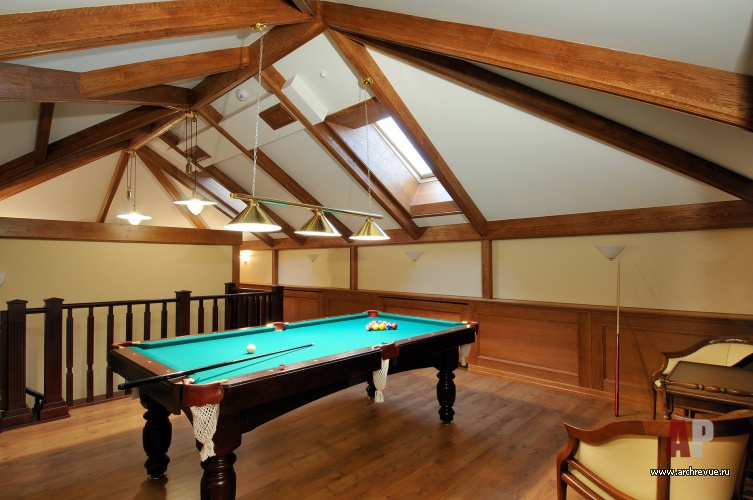 Второй уровень отдан приватным спальням хозяев и детским. На мансардном уровне находится развлекательная зона с домашним кинотеатром, зоной отдыха и бильярдной.