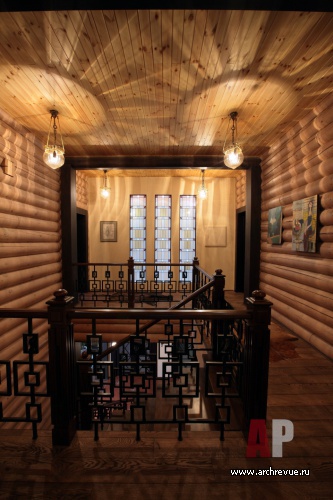 В кованом орнаменте ограждений лестницы и галереи второго этажа повторен рисунок ковки с фасада.