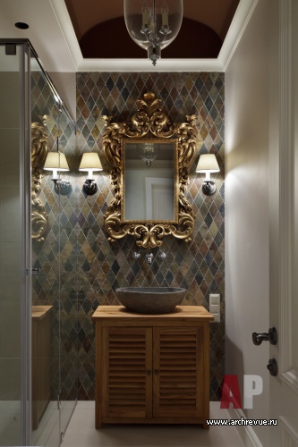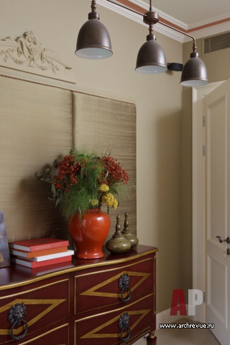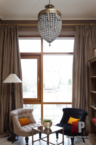 Камерная квартира спланирована как уютный загородный дом. Разные по назначению помещения расположены удобно и функционально. Центральное место в квартире занимает гостиная с камином.