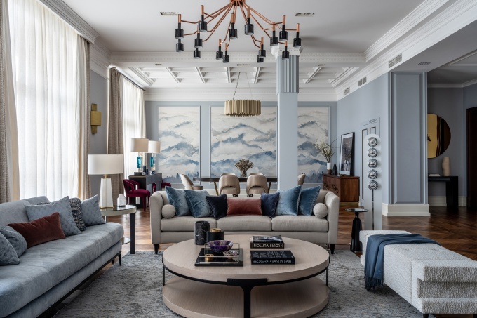 При оформлении квартиры в современном жилом комплексе вблизи Смольного собора в Санкт-Петербурге дизайнеры Анна Першукова и Анна Гришанова вдохновлялись работами известных американских дизайнеров и топовыми предметами фабрики Baker. Это позволило им создать элегантный и комфортный timeless interior в духе современной американской классики. Заказчики – семейная пара – пришли к дизайнерам по «сарафанному радио».