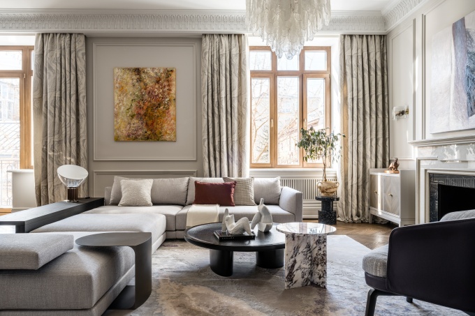 Заказчик живет на два города: работает в Москве, а отдыхает с семьей в Санкт-Петербурге. Он поставил задачу создать классическую, но нестандартную квартиру: живую, воздушную с современным прочтением традиционных решений. Важными критериями были легкость, воздушность пространства и наличие ярких акцентных элементов. Дизайнер соединила классические принципы и современную эстетику, предложив свое прочтение петербургской классики. Получился живой и воздушный интерьер, с яркими деталями и скрытыми смыслами.