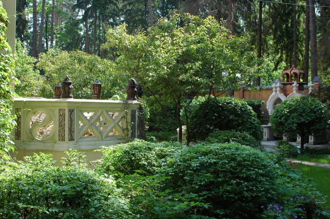 В классической усадьбе ландшафтный архитектор Владимир Жилинский спроектировал парк с парадным настроением, соответствующим помпезному архитектурному ансамблю. С помощью средств ландшафтного дизайна он выделил парадную часть, придав ей черты регулярного французского парка, который прекрасно поддерживает архитектуру главного дома, выстроенного из светлого камня в традициях замков Луары. Обширный участок за домом выполнен в стиле пейзажных парков и развивает природную тему с водоемом, беседкой и лесной зоной.