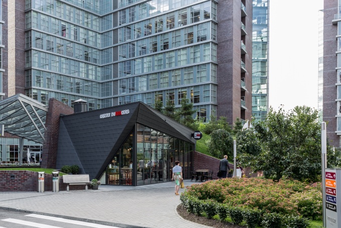 Архитекторы бюро IND Architects спроектировали и построили бургерную Grizzly Burrrgers, которая открылась в офисном кластере на Павелецкой. В основе архитектурной концепции постройки – ассоциации с горными вершинами, выраженные в конструкции наклонной металлической кровли и сплошном периметре остекления. Интерьер единственного зала решен в лаконичном скандинавском стиле и дополнен элементами стрит-арта.
