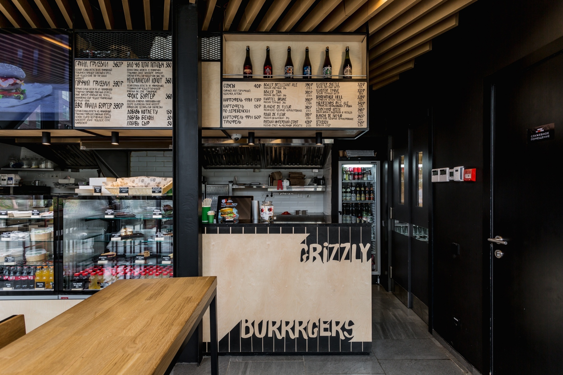 Фото бургерной Grizzly Burrrgers. Автор проекта здания и интерьера: архитектурное бюро IND Architects.