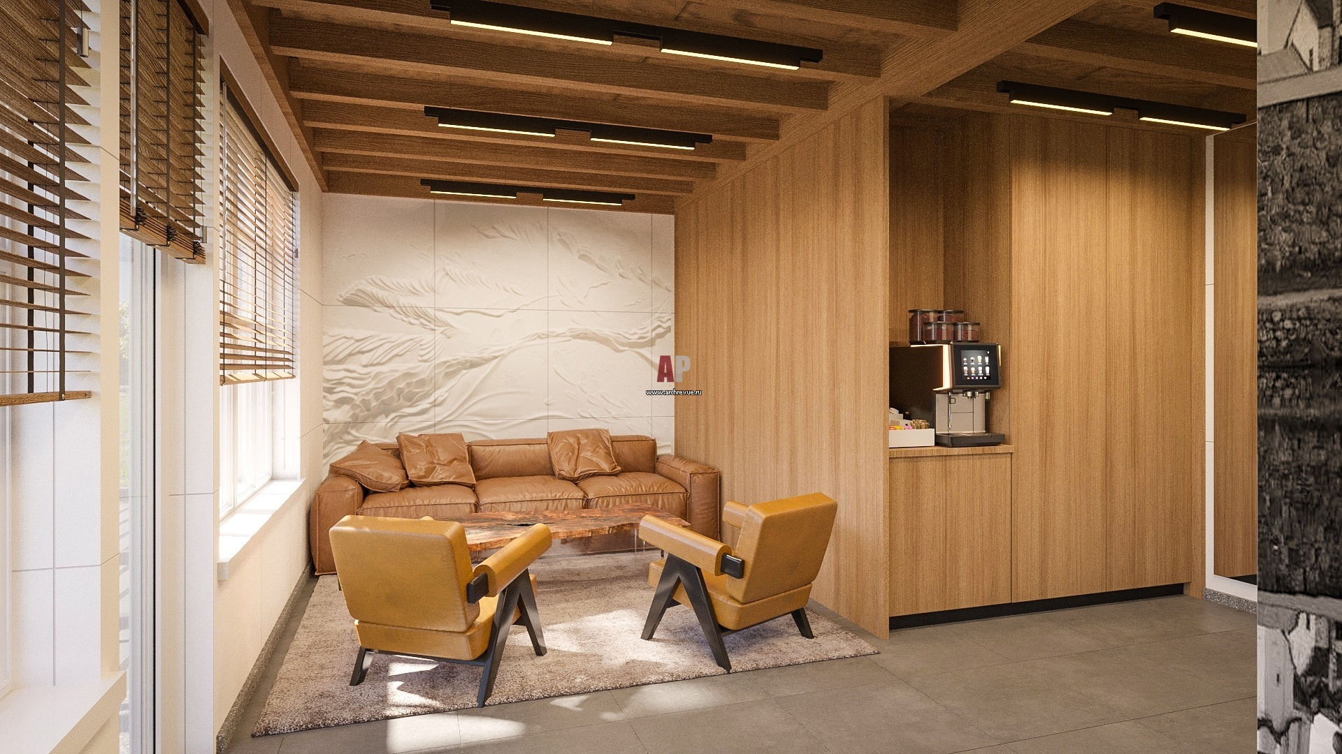 Перед архитекторами стояла задача продумать эргономику внутреннего пространства, бережно отнесясь к памятнику советского наследия, и воплотить в нем эстетику заповедных островов.