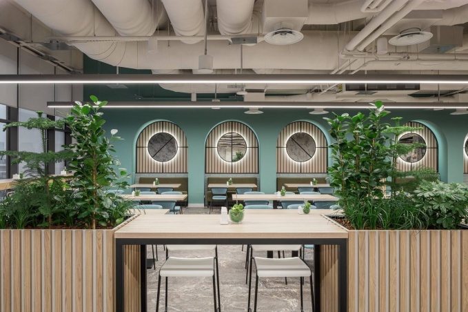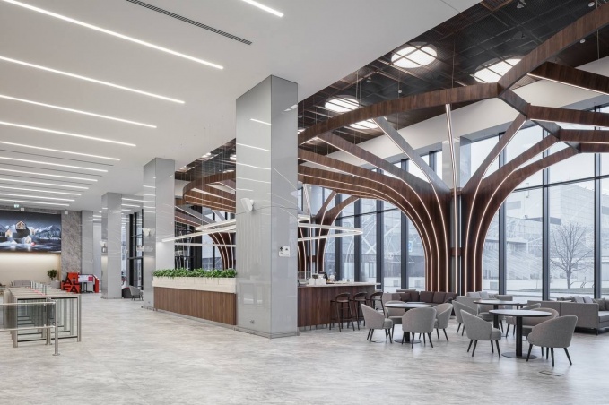 В основе концепции оформления нового офиса крупной финансовой компании по проекту АБ ABD объединением рабочего пространства и природного парка