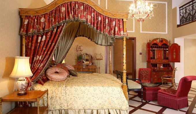 Экспозиция этой роскошной европейской спальни задумывалась ведущими дизайнерами галереи интерьерных решений Charles.Cameron как воплощение изысканности и аристократического духа. Элитная мебель из массива, кровать с кованым изголовьем английской фабрики And so to bed, широко известной своими репродукциями старинной мебели, позолоченная ночная лампа от Porta Romana, парчовое постельное белье и интерьерные ткани Marvic Textiles и в качестве финального штриха для завершения дизайнерской композиции панно от Lam Lee и эксклюзивная антикварная гравюра.