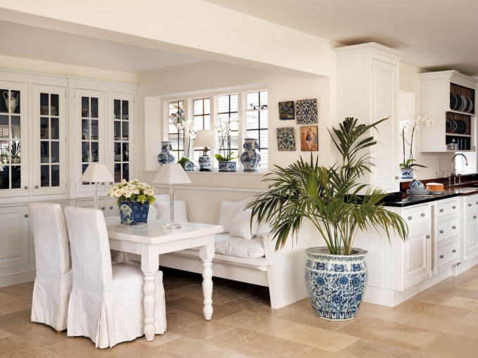 Белый цвет кухни подчеркивает не только ширину кухонного пространства, но и широту души своих хозяев. Экспозиция Original Hand Painted, спроектированная дизайнерами Charles.Cameron на базе кухонного гарнитура люксового английского бренда Smallbone of Devizes, предназначена для тех, кто видит кухню центром своего семейного очага. Декоративная линия, построенная на использовании гжельского фарфора и облицовочной плитки под гжель, также апеллирует к традиционным ценностям, и вместе с тем формирует оригинальный образ «средиземноморской кухни по-русски».