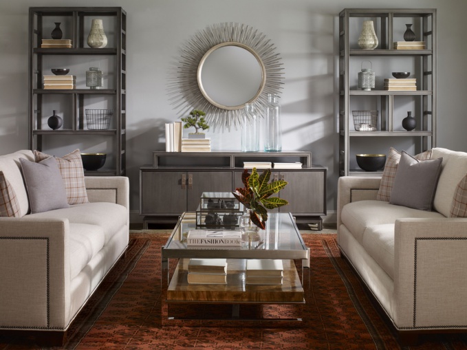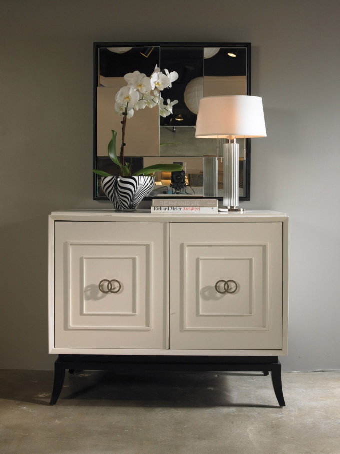 В переводе с английского Luxury of Serenity означает «роскошь безмятежности». Неудивительно, что в этой коллекции Стива Люнга (Steve Leung) для английского мебельного бренда Theodore Alexander одну из главных ролей играет круг, символ завершенности и покоя. Этот декоративный мотив прослеживается в серии мягкой кожаной мебели Loop, где выразительным визуальным акцентом выступает металлическая петля. А ряд предметов корпусной мебели для прихожей, гостиной и кабинета (сундук, комоды, сервант) украшает массивная круглая ручка на розетке в отделке Heritage Bronze.