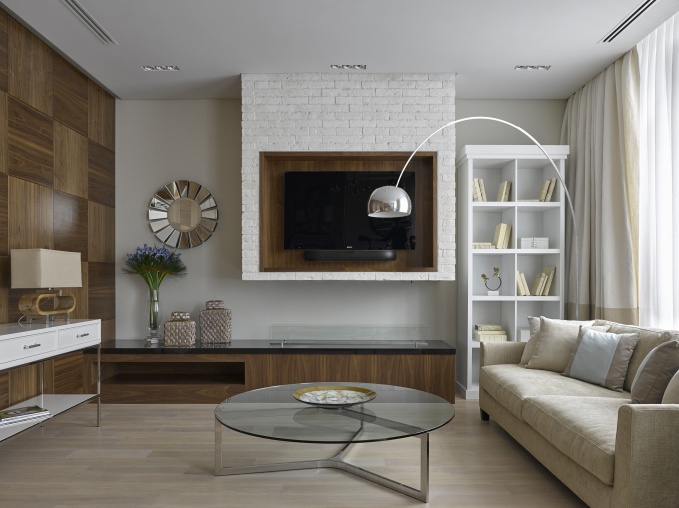 Роскошный и вместе с тем сдержанный дизайн интерьера современной гостиной «рассчитывается», как правило, по волшебной формуле - классический стиль с заметным включениями модерна и минимализма и точечными вкраплениями high tech. Именно стилистические комбинации позволяют, с одной стороны, распространить в помещении гостиной атмосферу гармонии, а с другой стороны, создать интерьер, который не выглядел бы рафинированным и скучным.