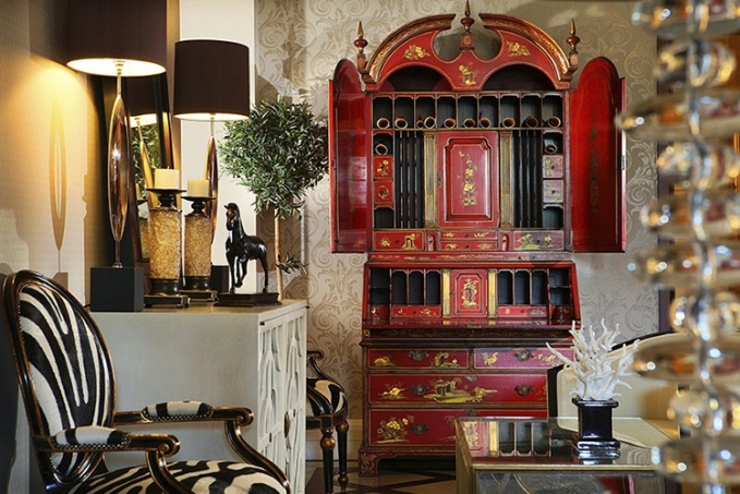 Изысканная деревянная мебель в восточном, а точнее азиатском стиле никогда не теряет своей актуальности, поэтому все известные мировые бренды время от времени отдают дань этой восточной моде. Райские птицы, мифические животные, сказочные растения, древние орнаменты – туалетный столик, стул, комод или секретер с высокохудожественной ручной росписью станет ярким стилистическим акцентом, эффектным колониальным аксессуаром и просто красивым украшением любого европейского классического интерьера.
