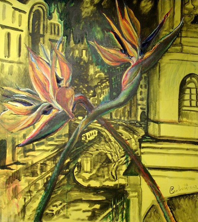 В разгар новогодних праздников самое время приобщаться к прекрасному! Ценители современного искусства до 10 января могут насладиться выставкой «Странствия художника» известной московской художницы, одной из основательниц московской художественной галереи «Les Oreades – Ореады» Лилии Славинской, которая проходит в Центральном Доме Журналиста на Никитском бульваре, д.8а. Лилия Славинская не только художник, совладелица галереи, открыватель подлинных талантов, но еще и профессиональный путешественник – среди множества ярчайших мест Славинская побывала и в Антарктиде!