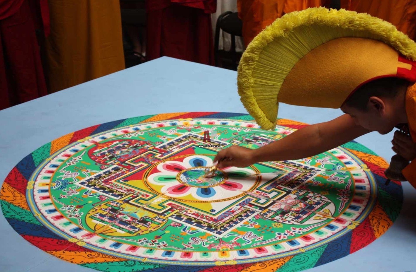 Мандала Авалокитешвары - священный дворец из песка, буддийская модель Вселенной. Это удивительное по красоте и гармонии произведение буддийского искусства, составляемое по строгим канонам из мелкого толченого мрамора и полудрагоценных камней.