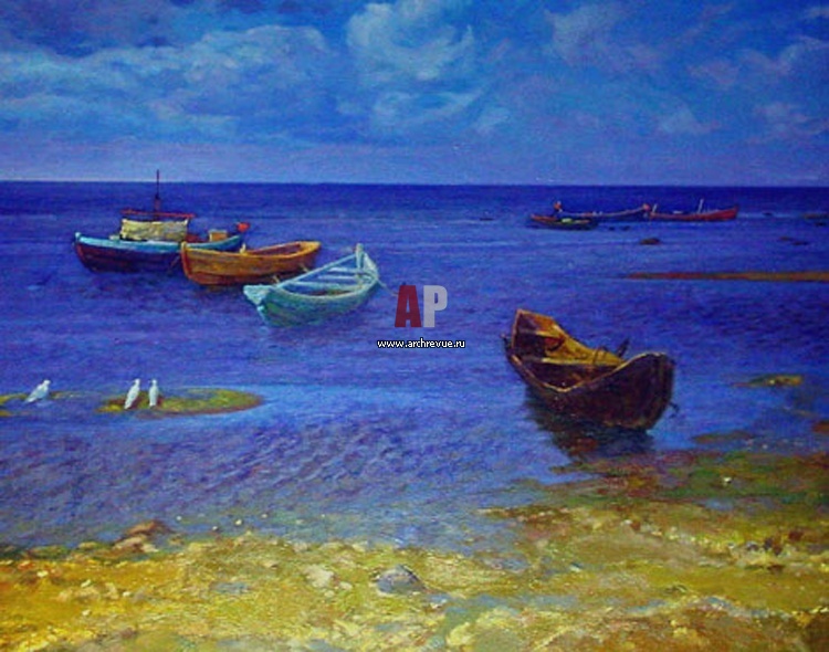 Лодки у моря. Амир Тимиргалеев. 2005. Холст, масло. Современный авангард в живописи