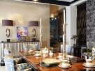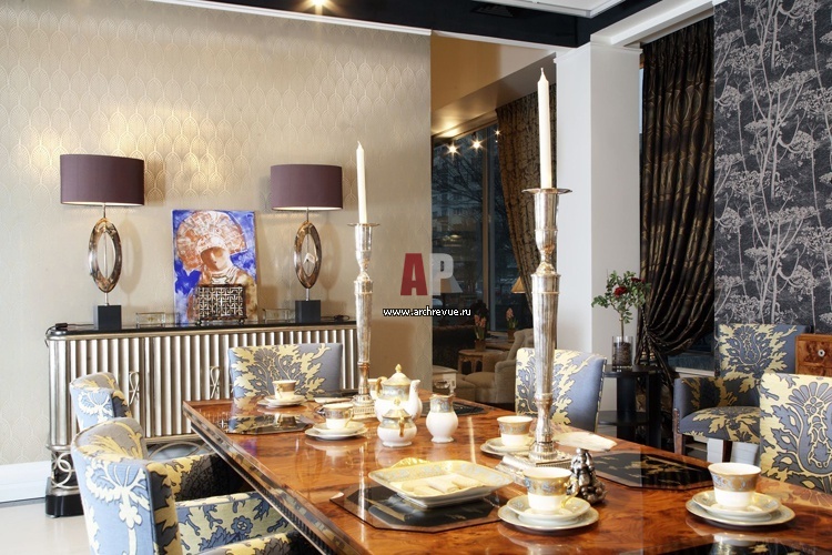 Ар-деко называют стилем кинозвезд и миллионеров. Он самый роскошный и вместе с тем функциональный и комфортный из тех, что существовали в мировой культуре. Пример тому –экспозиция парадной столовой в стиле ар-деко, представленная в интерьерной галерее Charles.Cameron. Для ее создания дизайнеры салона использовали лучшие образцы мебели из древесины редких сортов с орнаментальным текстилем от ведущих трендовых производителей – Restall Brown & Clennell, Alchymia и других. Нейтральный фон обоев и аксессуары – зеркала, вазы, светильники, подсвечники – не перегружают интерьер и создают точное попадание в блистательную эпоху.