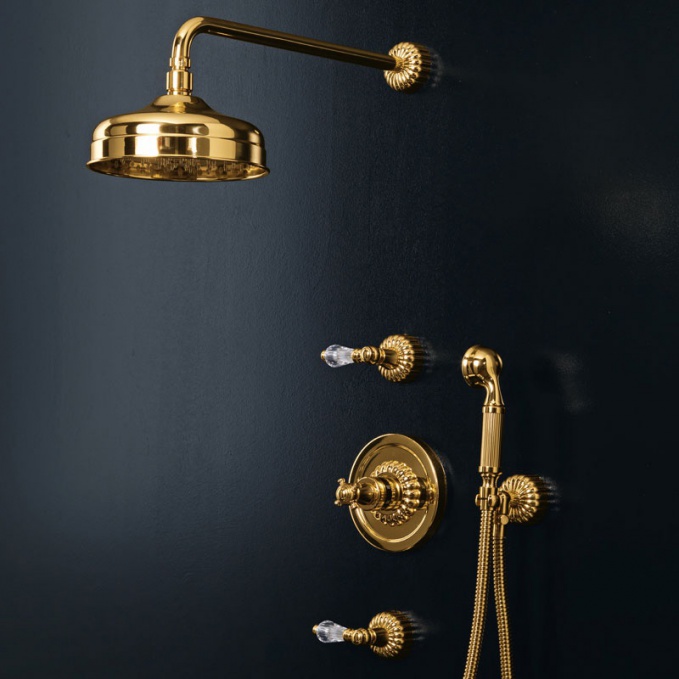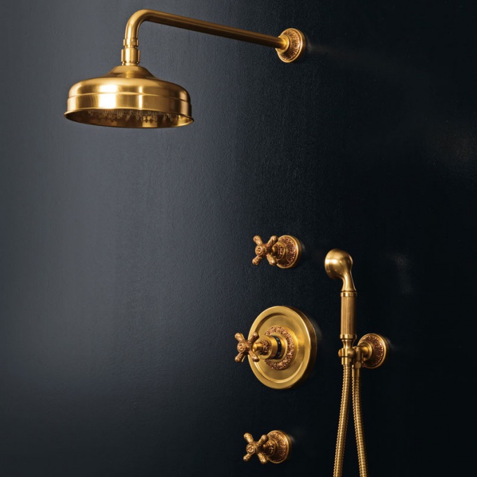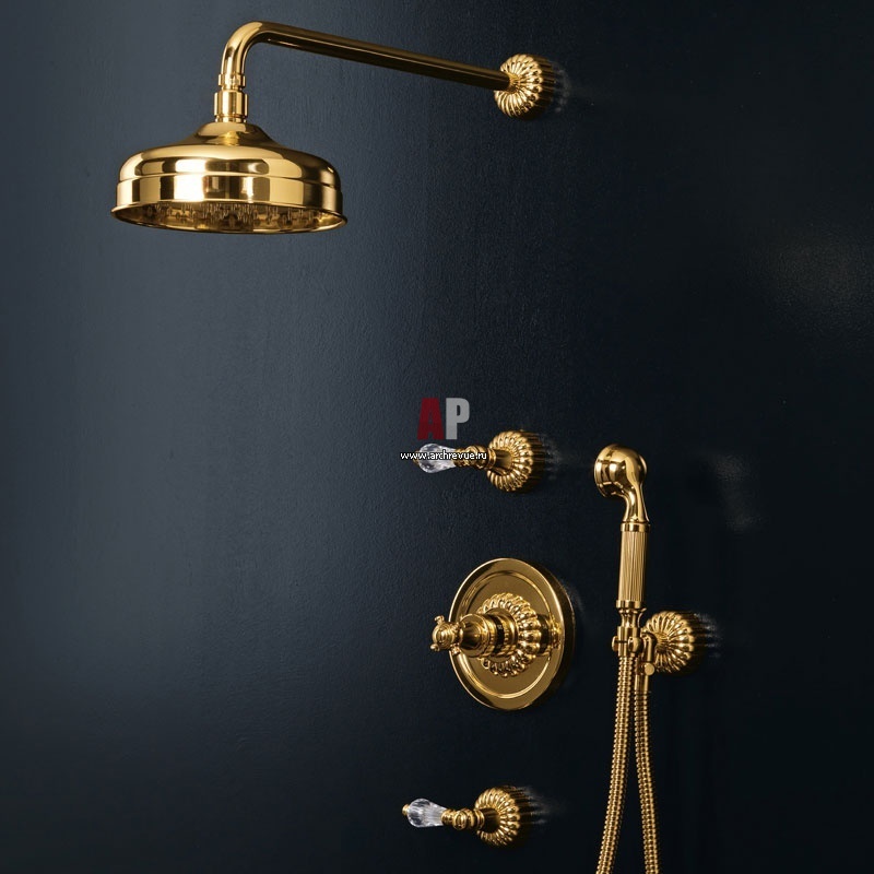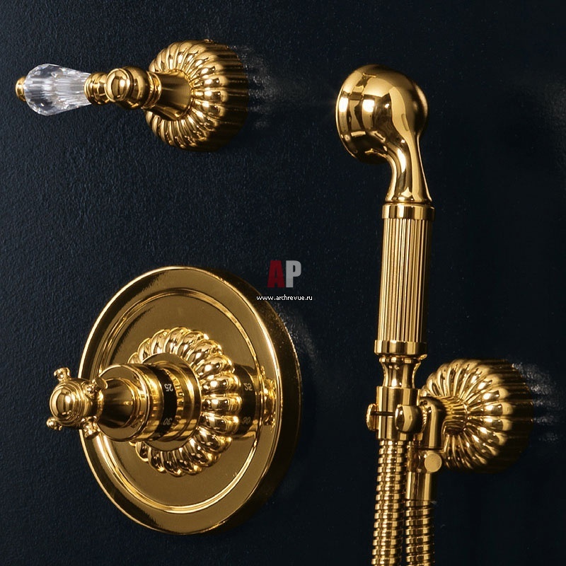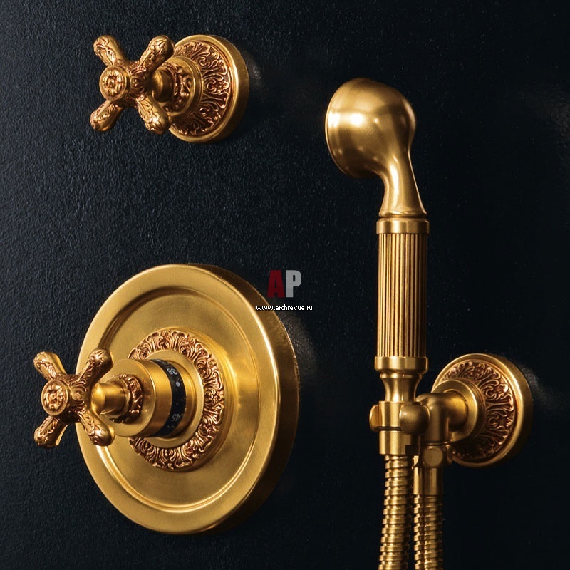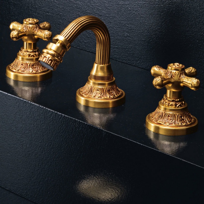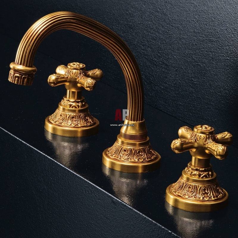 Итальянская фабрика Salice Paolo известна на весь мир прежде всего как производитель дверной, оконной и мебельной фурнитуры класса люкс, однако в ассортименте компании, славной своими традициями в области обработки латуни, также можно найти роскошные комплекты смесителей для ванных комнат. Смесители из серий Ares и Clio выполнены из высококачественной латуни с покрытием из 24-каратного (Ares) и патинированного (Clio) золота, нанесенного гальваническим способом. Заказать атмосферу Древней Греции для своей ванной комнаты можно в компании Newporte.