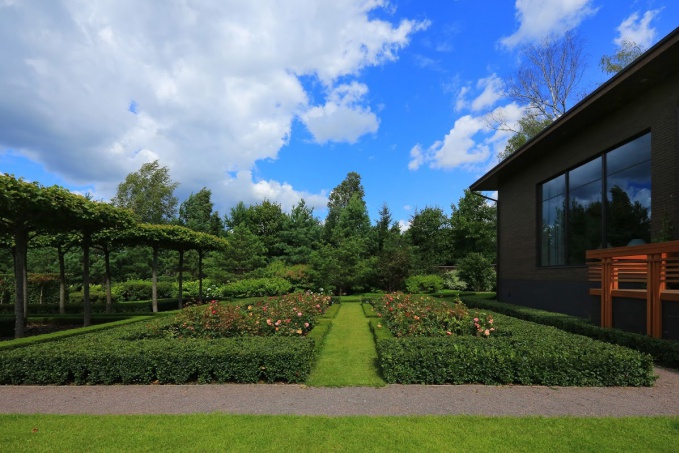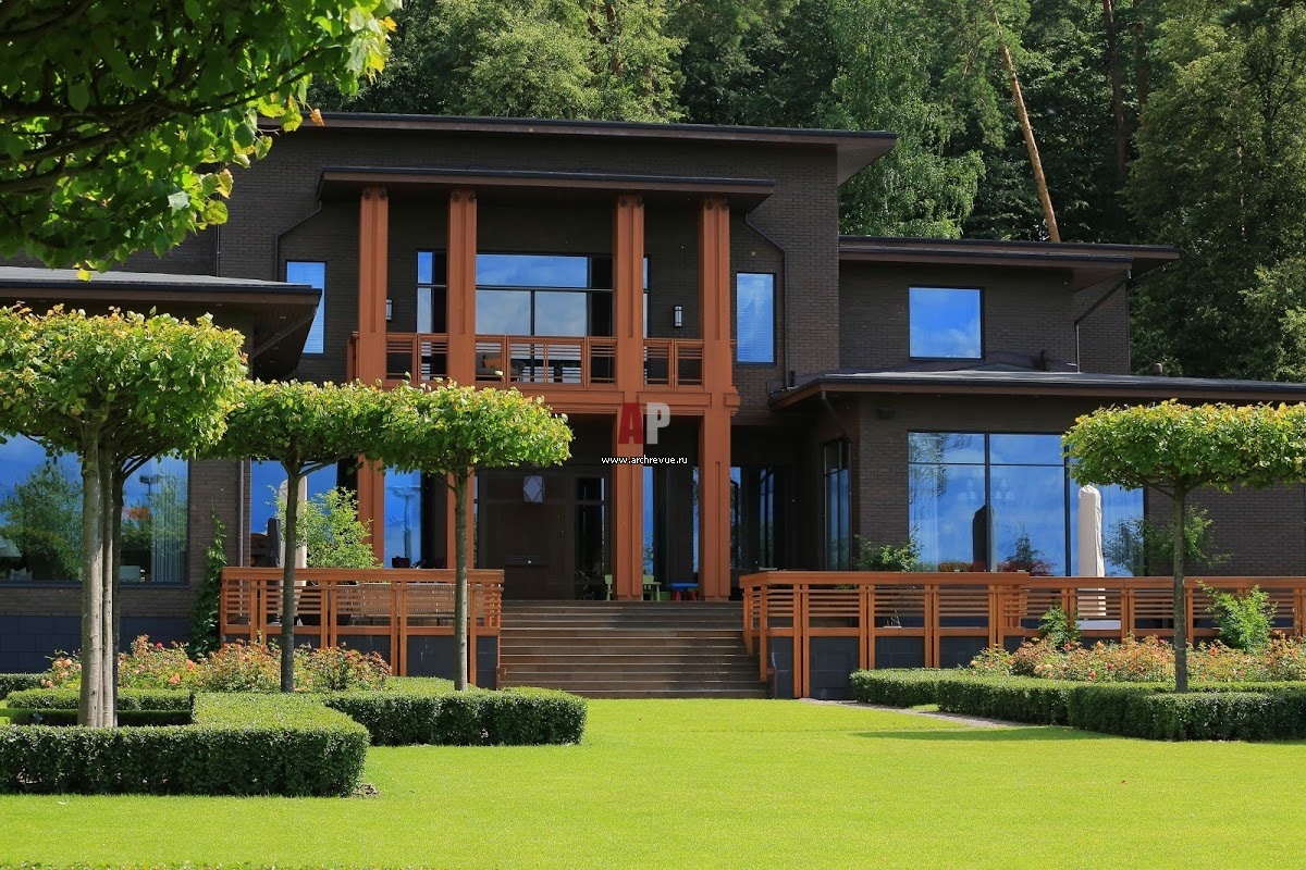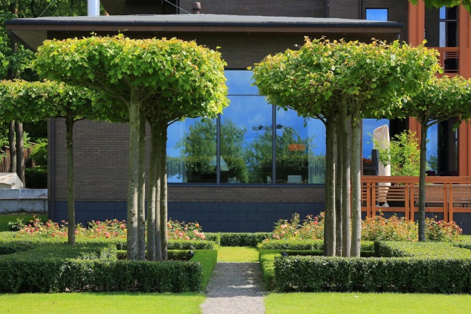 Новый проект компании IL NATURE в Жуковке сами ландшафтные архитекторы назвали «счастливым союзом модерна и барокко». Это гармоничное сочетание современной, сугубо функциональной архитектуры дома с регулярной планировкой сада по французскому классическому образцу. Образ парадной части участка формирует изысканная геометрическая композиция из лип, которой вторят лаконичные партеры с цветниками, разбитые на сектора крестообразными дорожками. Крышеобразные кроны лип великолепно рифмуются с плоской крышей самого дома. Ландшафтная композиция парадной зоны находит свое продолжение в «зеркалах» панорамных фасадных окон.