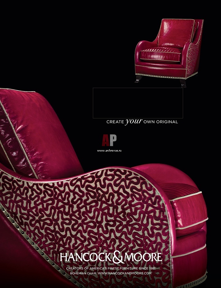Американский бренд мягкой мебели Hancock & Moore стирает все границы между классикой и современностью, вообще любые стилистические границы, в порыве безудержного дизайнерского самовыражения. Перечислить все материалы и технологии, которые применяются в производстве этих волшебных диванов и кресел – невозможно. Во-первых, их предельно много, а во-вторых, нет никакого смысла рассматривать Hancock & Moore с позиций кастомизации – каждая модель это яркая личность, уникум, арт-объект, произведение мебельного искусства.