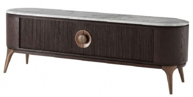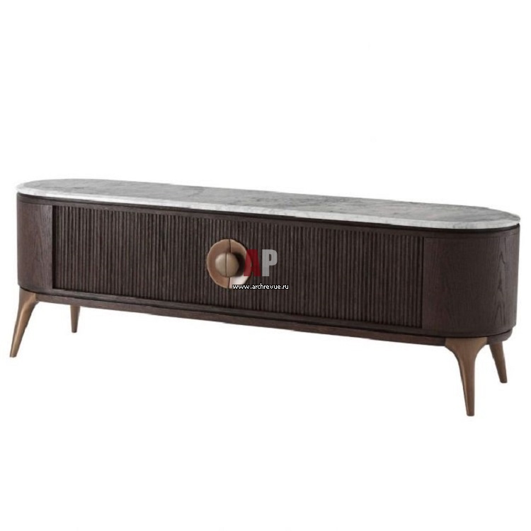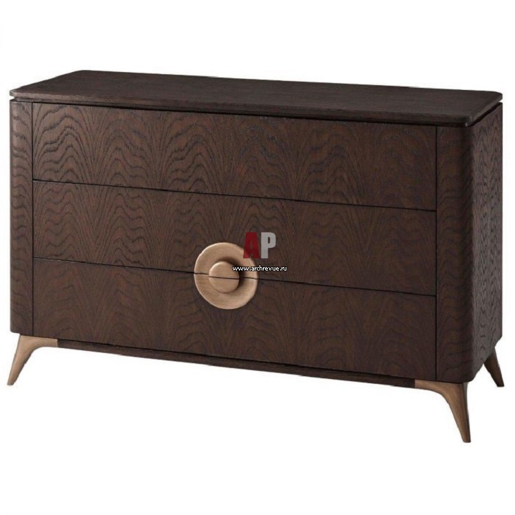 В переводе с английского Luxury of Serenity означает «роскошь безмятежности». Неудивительно, что в этой коллекции Стива Люнга (Steve Leung) для английского мебельного бренда Theodore Alexander одну из главных ролей играет круг, символ завершенности и покоя. Этот декоративный мотив прослеживается в серии мягкой кожаной мебели Loop, где выразительным визуальным акцентом выступает металлическая петля. А ряд предметов корпусной мебели для прихожей, гостиной и кабинета (сундук, комоды, сервант) украшает массивная круглая ручка на розетке в отделке Heritage Bronze.