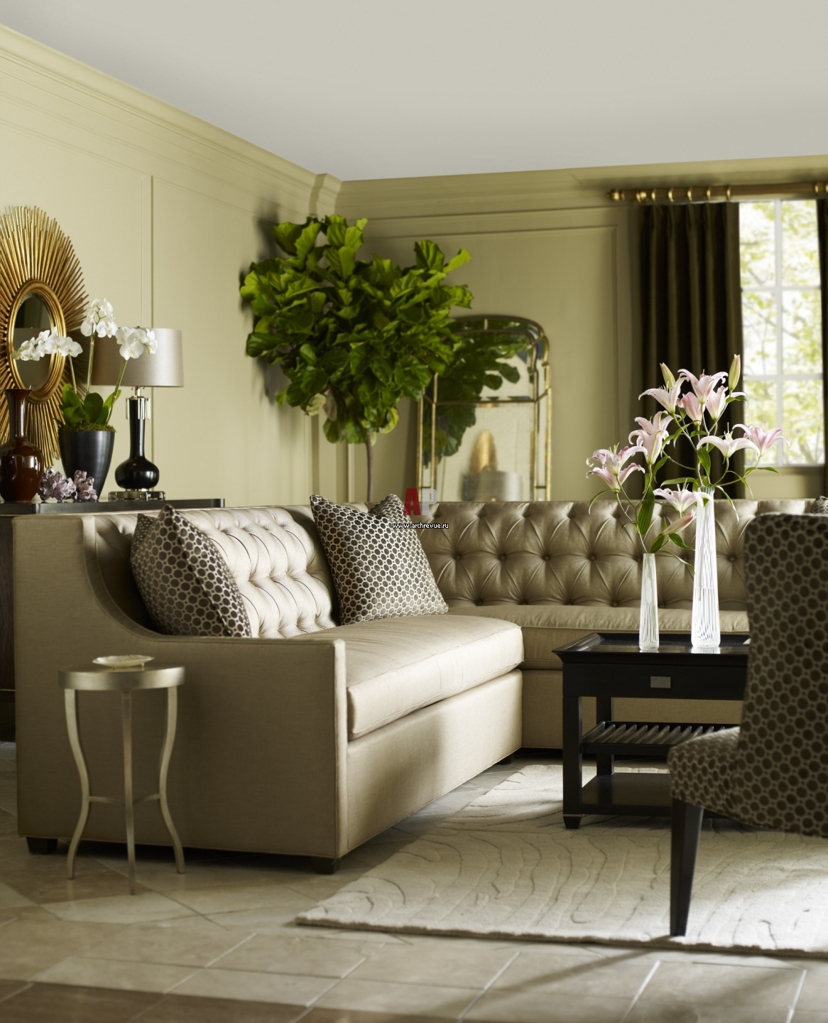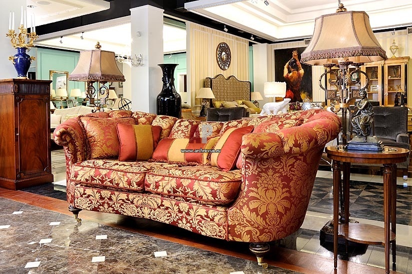 Для парадного рабочего кабинета подойдет массивный кожаный диван в английском стиле, а для классической гостиной лучше подобрать мягкий диван с резными подлокотниками и обивкой из гобелена или бархата.