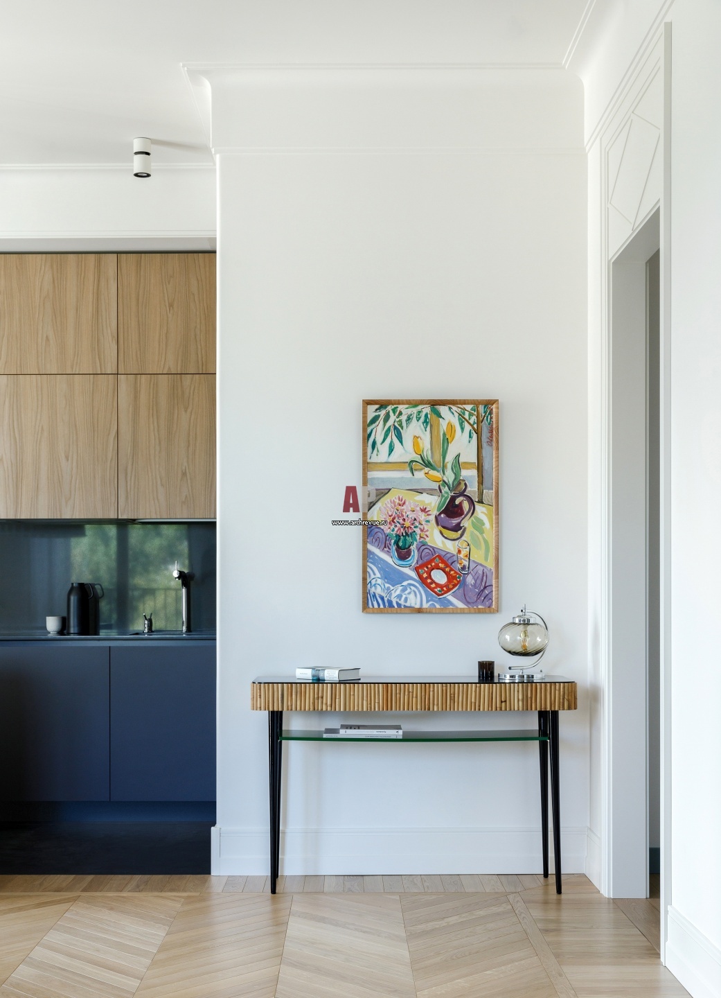 Кухня-гостиная. Над консолью – натюрморт Ильи Овсянникова.