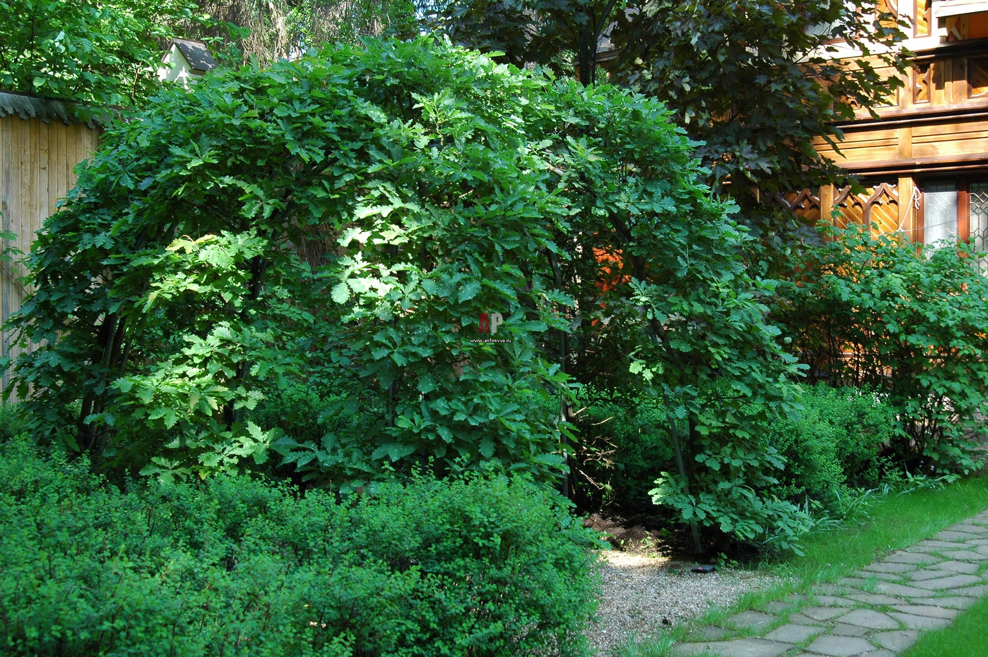 Совершенно особенный, плавный и мягкий ритм задает шары клена остролистного. Эти растения обрамляют парадное крыльцо и площадку вокруг декоративного водоема.