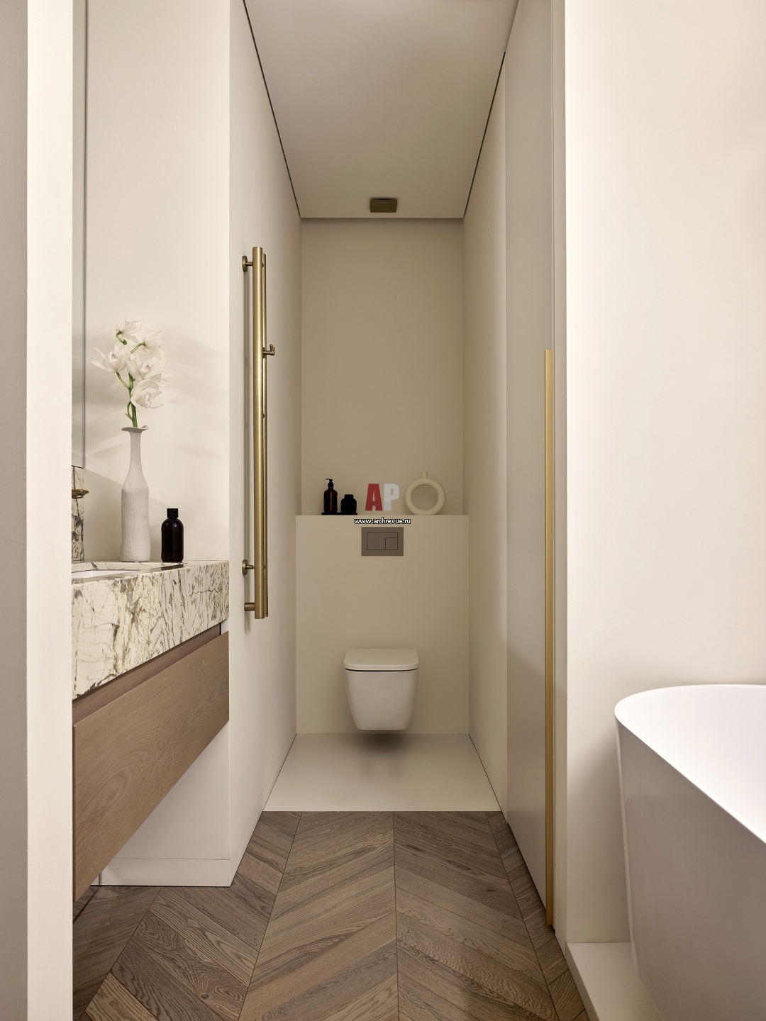 Монохромная квартира с искусством в Хамовниках. Интерьер хозяйского санузла.