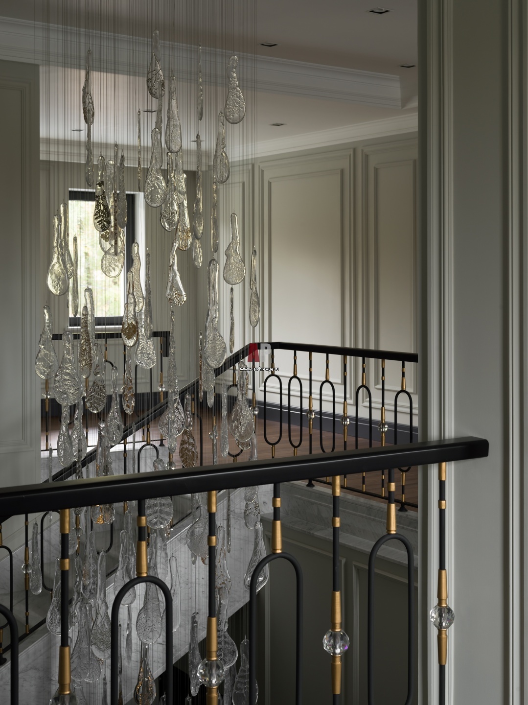 Респектабельная резиденция из белого камня. Лестница с хрустальной трехуровневой инсталляцией.