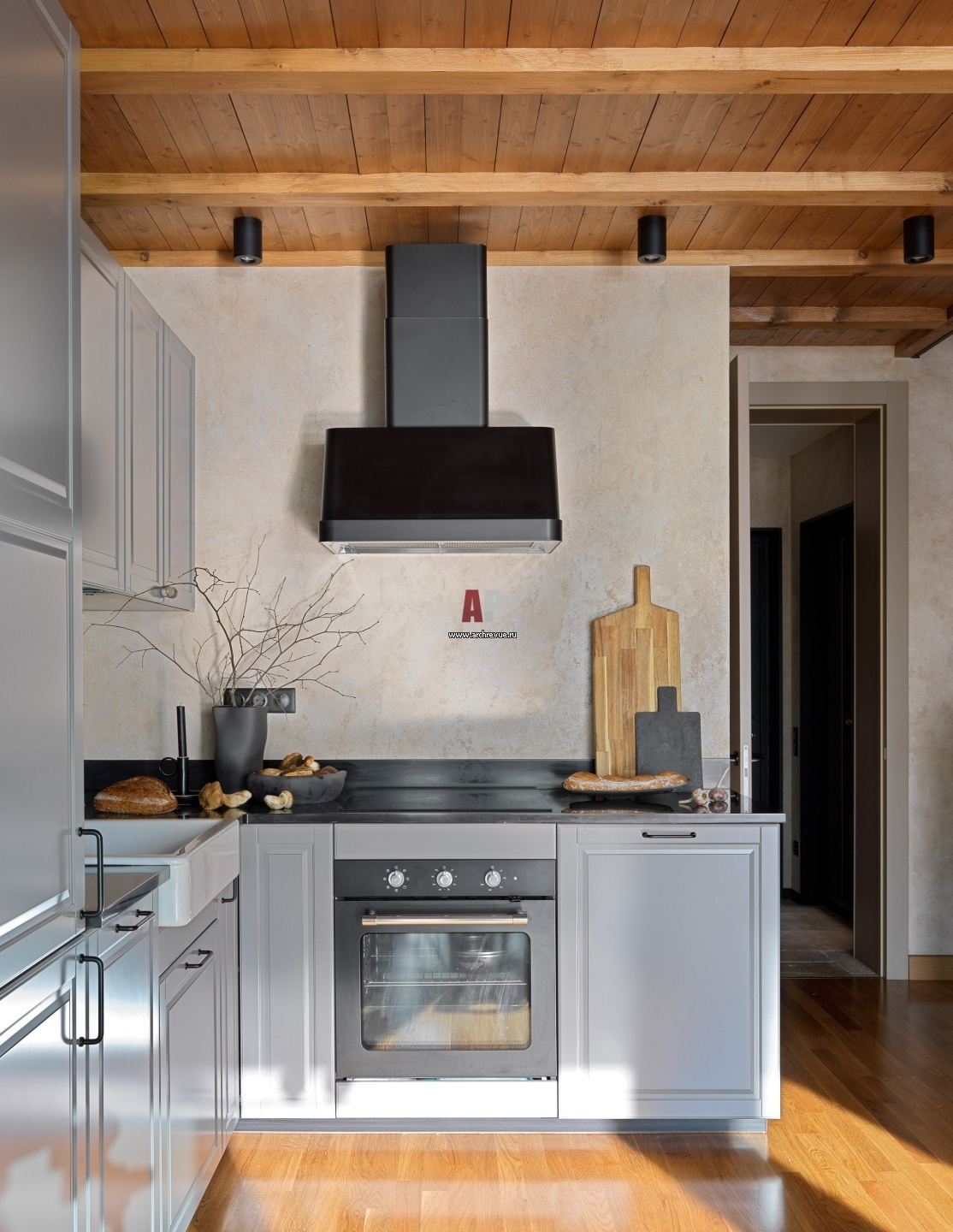 Угловая кухня в гостиной. Гарнитур, Икеа. Столешница из искусственного камня. Графины, Serax. Бокалы и блюдо, Sempre.