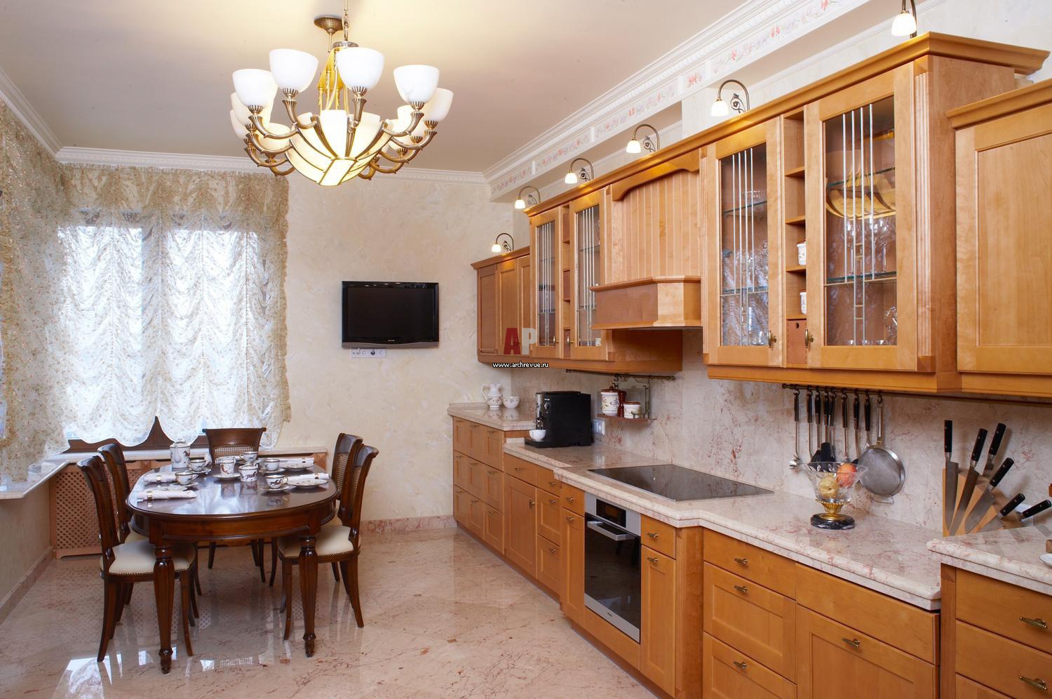 Объединяющий элемент интерьера – натуральный мрамор, поставщик «Мармореал». Им облицованы полы, кухонный фартук и столешница. В поддержку натурального мрамора стены декорированы венецианской штукатуркой с эффектом полированного мрамора.